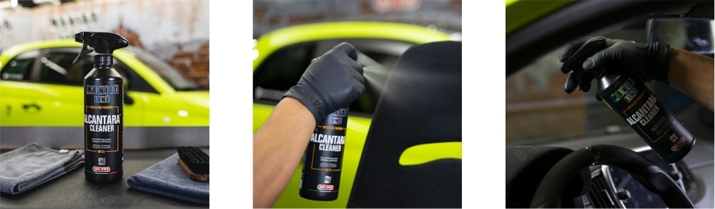 • Alcantara® Cleaner skutecznie usuwa zabrudzenia, jednocześnie zachowując miękkość materiału. Jest bezpieczna dla struktury i koloru tapicerki z Alcantary, nie powoduje odbarwień ani przesuszeń.